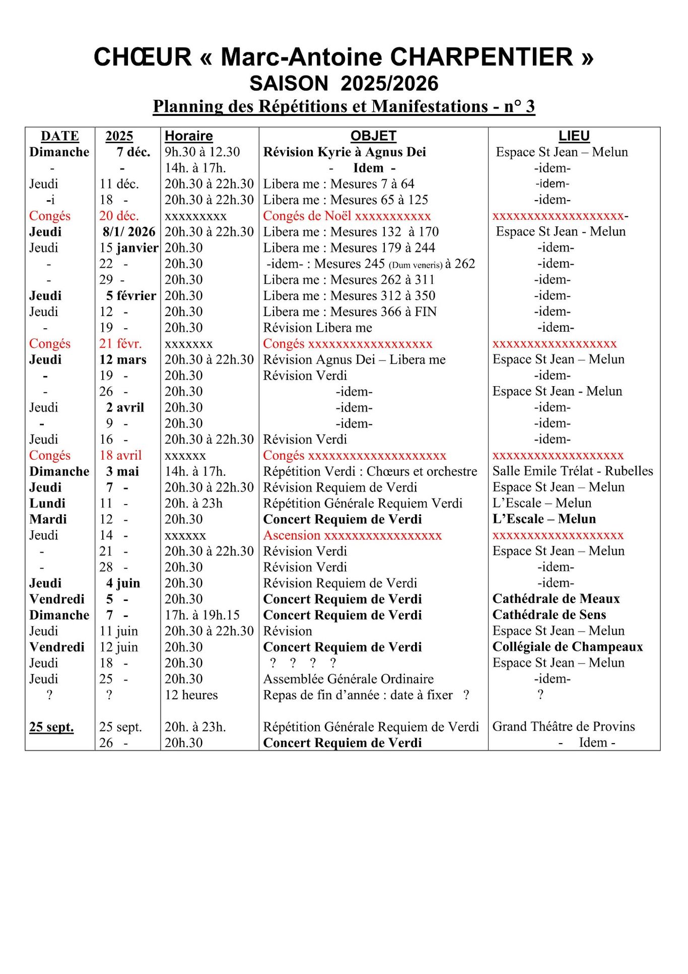 - 25 septembre à 20h00 : Générale au Grand Théâtre de Provins