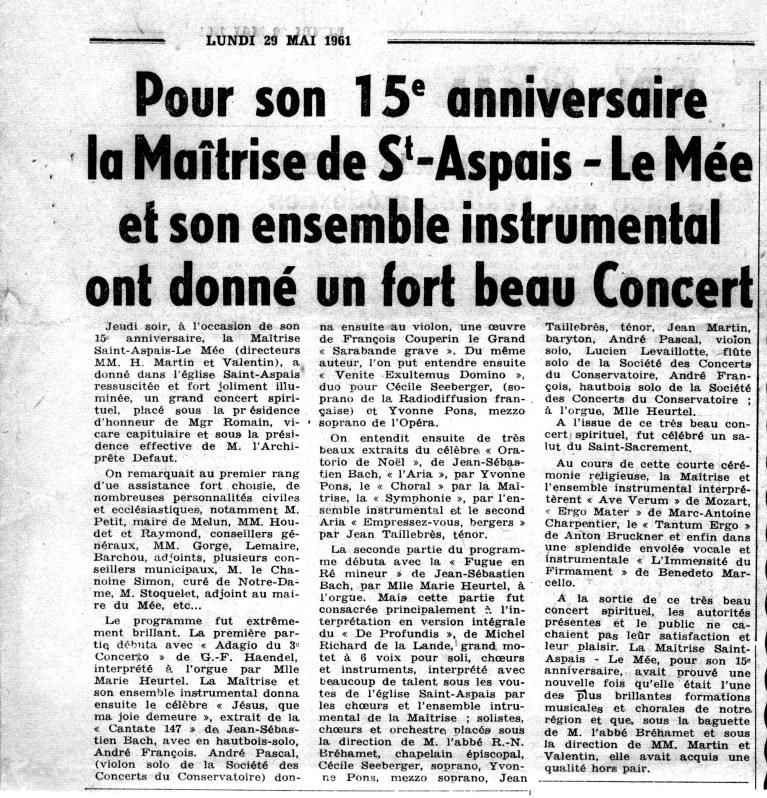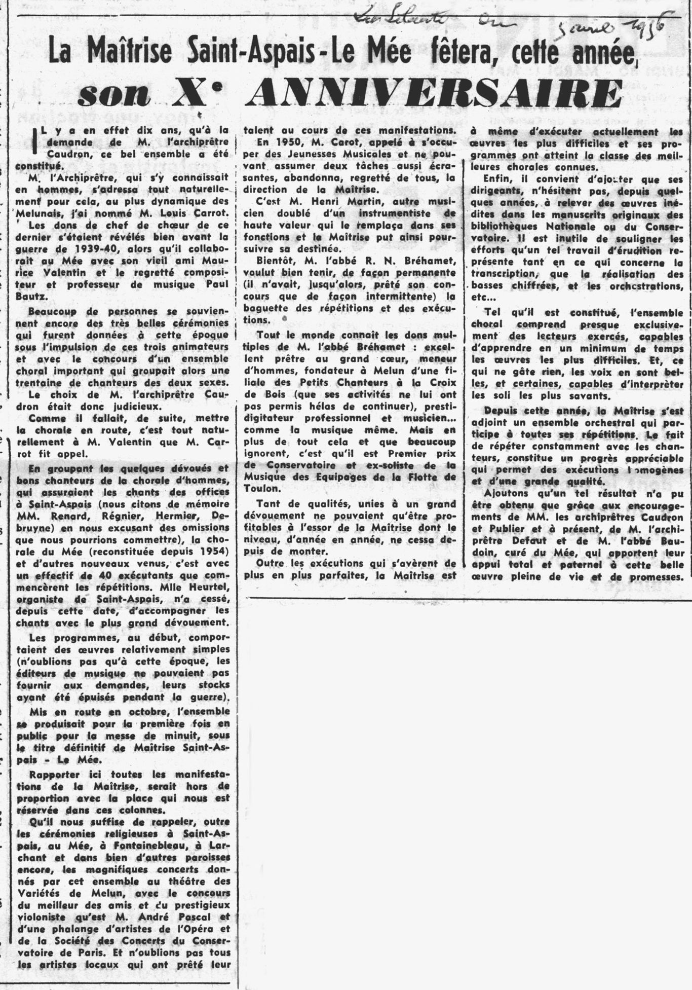 Source: La République de Seine et Marne- 31 Mars. 1964