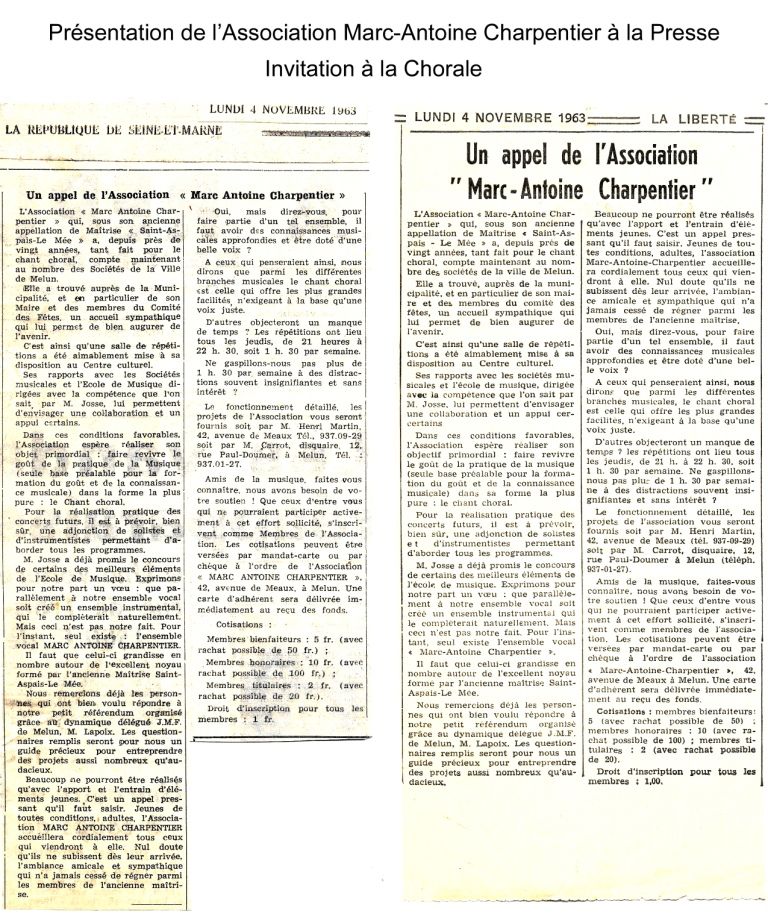 Source: La République Seine et Marne - 4 novembre 1963 et La liberté - 4 novembre 1963