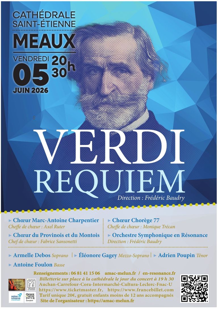 Le Chœur Marc-Antoine Charpentier propose un concert consacré au Requiem de Giuseppe Verdi pour 4 solistes, chœur et orchestre. Créé en 1874, le Requiem de Verdi reste l'un des plus populaires parmi les grandes messes des morts du répertoire classique. Mais la majestueuse partition verdienne rappelle aussi par son lyrisme et sa puissance les grands opéras de son créateur. Dans ce chef-d’œuvre, Verdi met toute sa verve pour exprimer le besoin de consolation et d’abandon, mais aussi la communion humaine et l’espoir face à la mort.